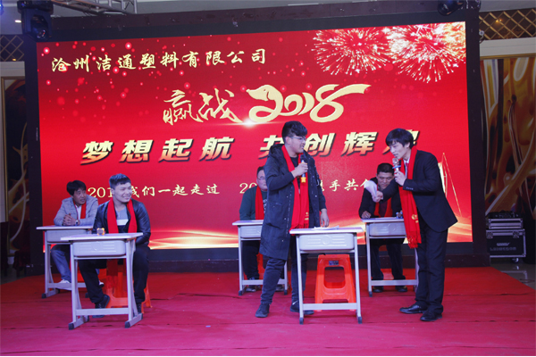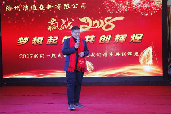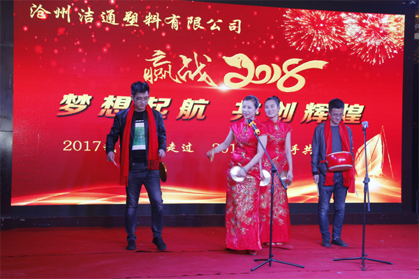 冬去春回又一載,似水流年旺年來(lái)。2018年2月12日下午,滄州潔通塑料有限公司2017年年會(huì)在正達(dá)大西洋酒店隆重舉行。潔通公司全體員工歡聚一堂,在熱情、溫馨、歡樂(lè)的氣氛中回首2017年取得的成績(jī),共同迎接2018年的到來(lái)。