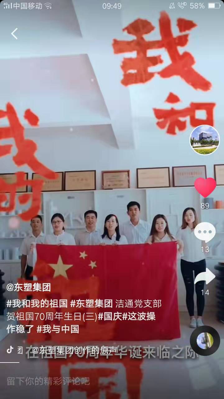 在祖國70周年華誕來臨之際,潔通塑料采取多種形式為祖國慶生。潔通公司作為潔通塑料的子司積極參與了集團(tuán)舉辦的活動,為祖國獻(xiàn)上美好的祝福!